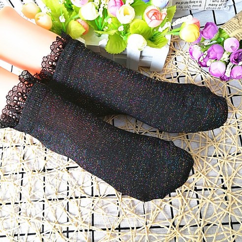 이 양말은 반짝임과 레이스까지 가지고 있는 유니크한 아이템으로, 어떤 신발에도 잘 어울리는 유니크한 느낌을 연출할 수 있습니다. 힐이든 로퍼든 상관없이 어디든 다른 느낌으로 연출할 수 있어요.